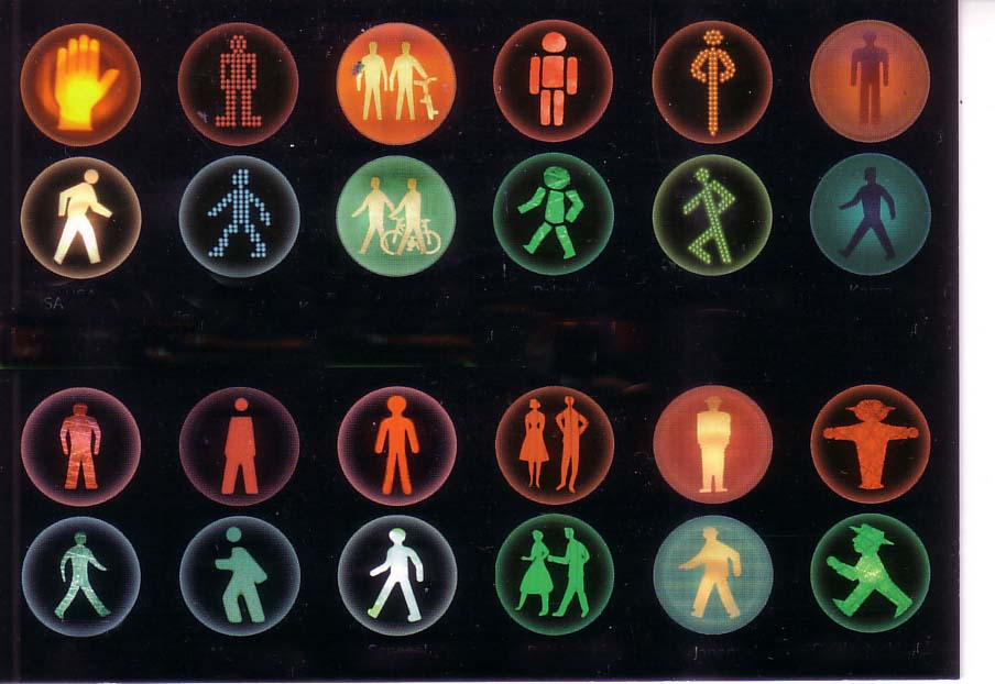 De mannetjes op het oversteeklicht zijn niet overal gelijk. In welk landen geven deze figuurtjes aan of je moet stoppen of mag oversteken?
