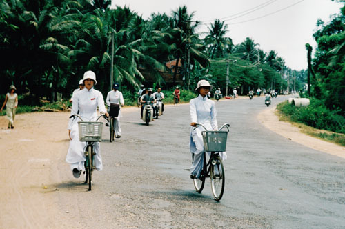 In 2001 maakten wij een reis van Saigon naar Hanoi. Vietnam maakte op ons een onvergetelijke indruk. Vriendelijke mensen, die hoop voor een betere toekomst uitstraalden. Ik maakte er honderden (analoge) foto’s. En heel veel van dit soort plaatjes, met schoolmeisjes in hun witte uniformen. Ze zagen er zo mooi en zo kwetsbaar uit.
