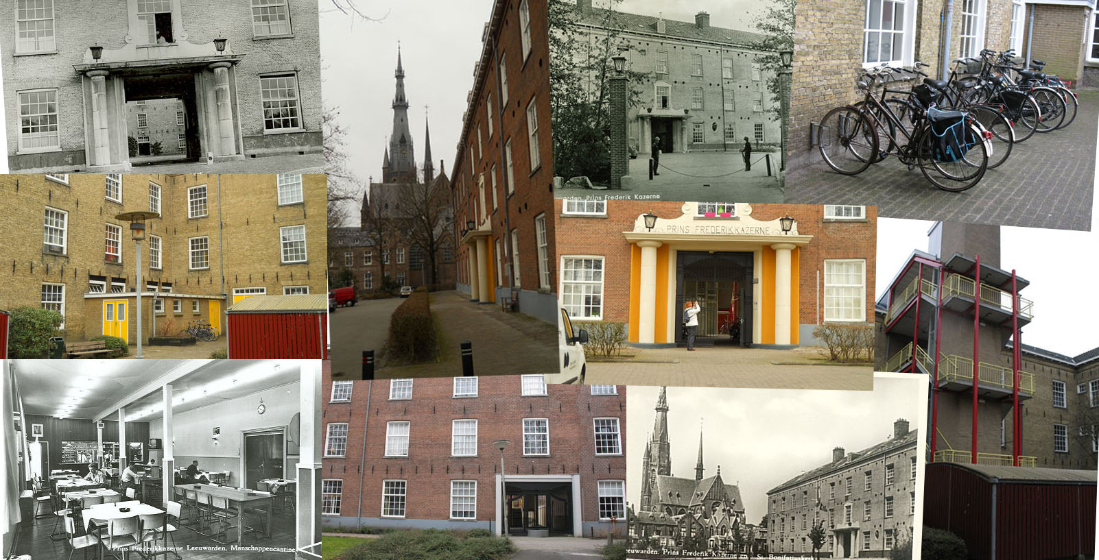Omdat het bezoek aan Leeuwarden met schoonzus zo goed bevallen was, besloten Leo en ik om nog eens een paar daagjes te gaan. Leo heeft in Leeuwarden een half jaar in dienst gelegen en wilde de oude kazerne nog wel eens zien. Daar gingen we, gewapend met ons fototoestel. En ja hoor, de kazerne zag er aan de buitenkant nog bijna hetzelfde uit. Maar de hekken waren weg, net als het wachthuisje en er stonden geen grote legertrucks meer. Maaeenmaal door de poort was er veel veranderd. Er zijn jongerenwoningen in gemaakt, galerijen toegevoegd en de binnenplaats, waar volgens Leo geëxerceerd werd, was nu beplant en stond vol fietsen. Ach ja zo gaan die dingen.