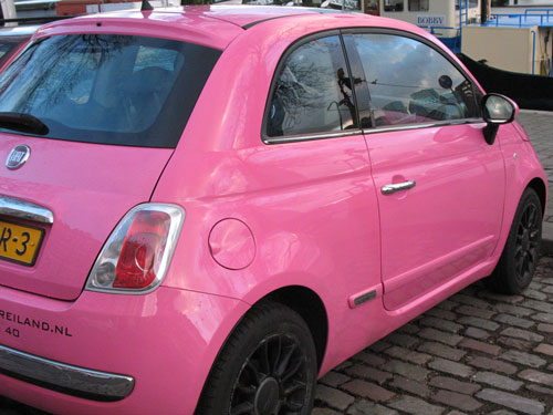 Maar dit is voor al die lieve dromers, die zo nu en dan eens willen rijden in een zoet gekleurd, lief en klein autootje. Alleen of met hun droomprins of prinses, net alsof je samen in roze een wolkje zit? Dan kun je deze auto huren. Even googlen en je vind hem. Want ook voor dromen moet je wel iets doen!