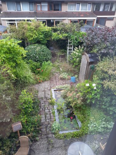 Er staat heel veel groen in onze tuin en dat mag best wel z’n gang gaan. Maar regen en wind en daarna flink zon had ons stukje veranderd in een jungle. En dus waren we maar wat blij dat er hulp kwam.