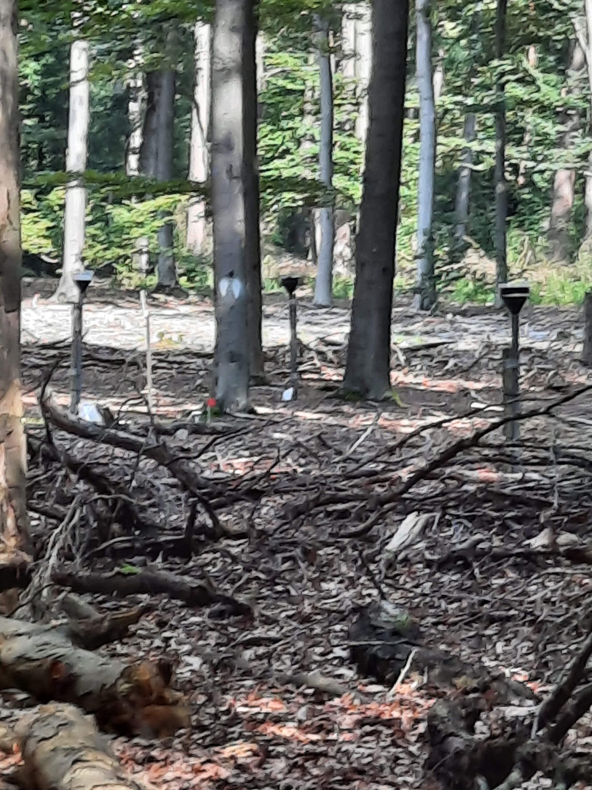 In Beekbergen kwamen we langs een stukje kaalgeslagen bos. Maar op het lege stuk stonden nog allerlei palen met trechters erop. En aan één van de overgebleven bomen hing een plakkaat.