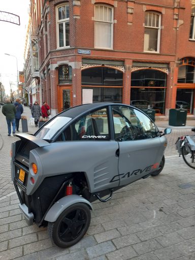 Al wandelend kom je de vreemdste voertuigen tegen. Zoals dit futuristische karretje. Is het een autootje of een fiets? En hoe snel kun je hier mee rijden?