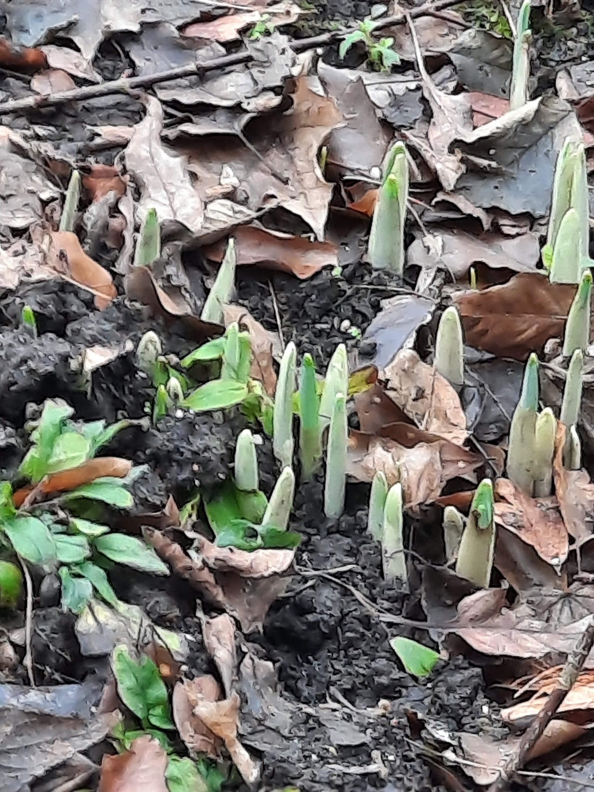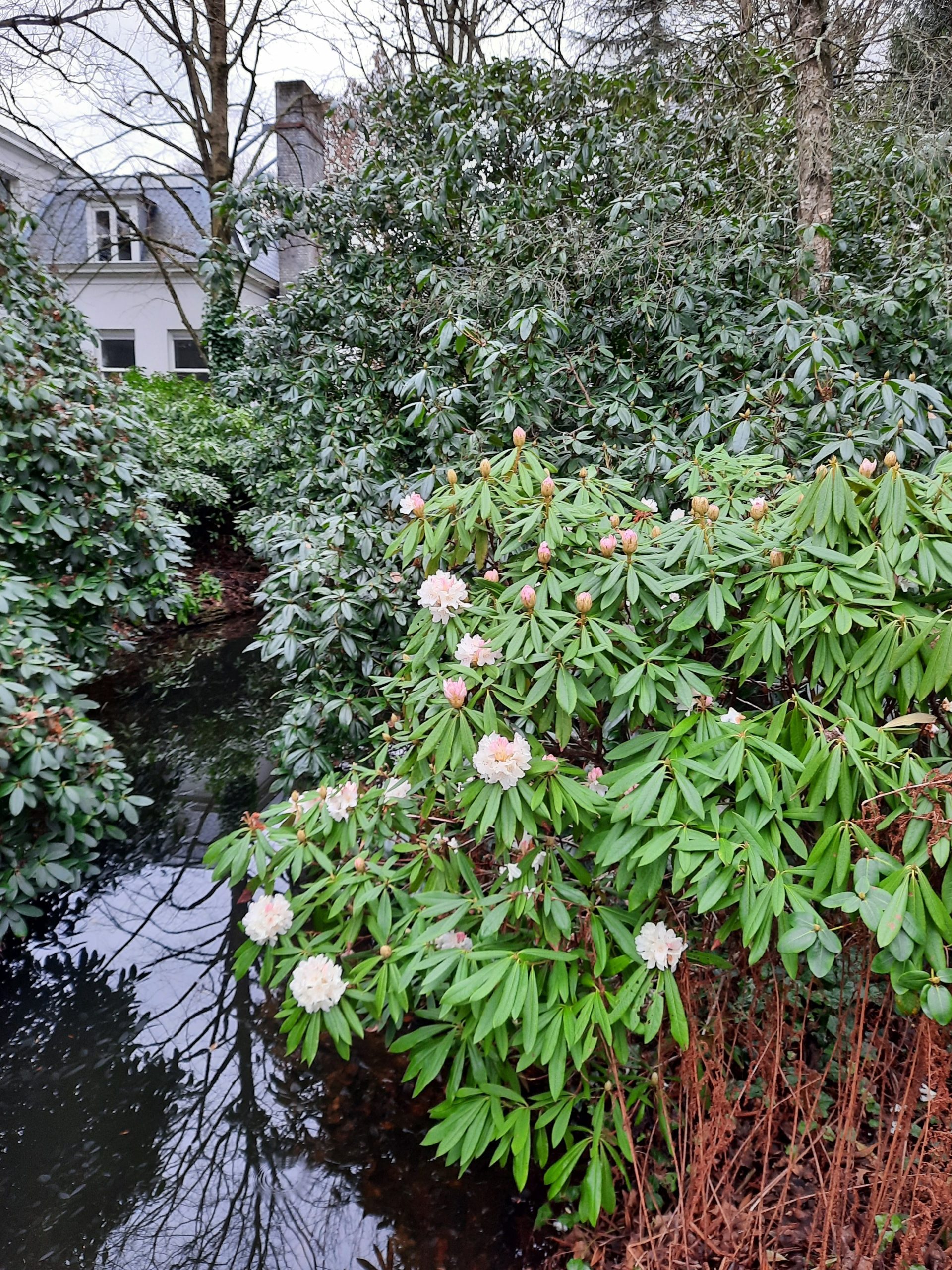 Op verschillende plaatsen piepten narcissen, krokussen en sneeuwklokjes uit de aarde. Op de takken zag je dikke of iets minder dikke knoppen en de rododendrons konden bijna niet wachten met openspringen. Ja, bijna aan het eind staat er zelfs een die al volop voorjaarspracht vertoonde.
