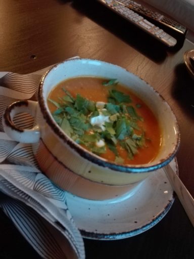 Maar waarom zou je geen soep als ontbijt kunnen eten…? Dus zaten we ’s morgens aan een kopje soep. Lekker warm, een beetje pittig en absoluut geen straf.