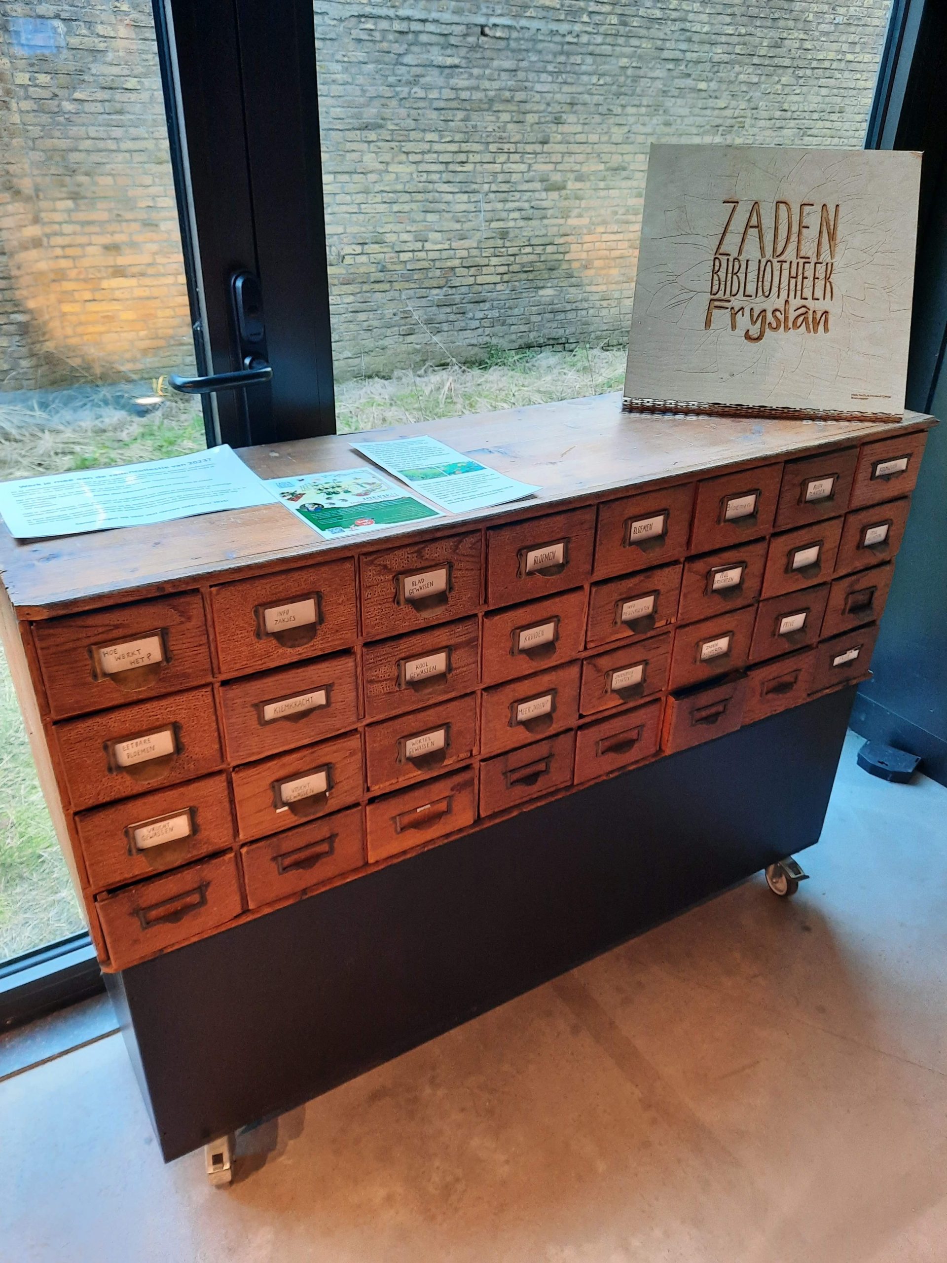 In de bibliotheek van Leeuwarden zag ik dit kastje staan. Niet alleen leuk, maar ook nuttig. Want in die vele laatjes kon je zaden doneren.