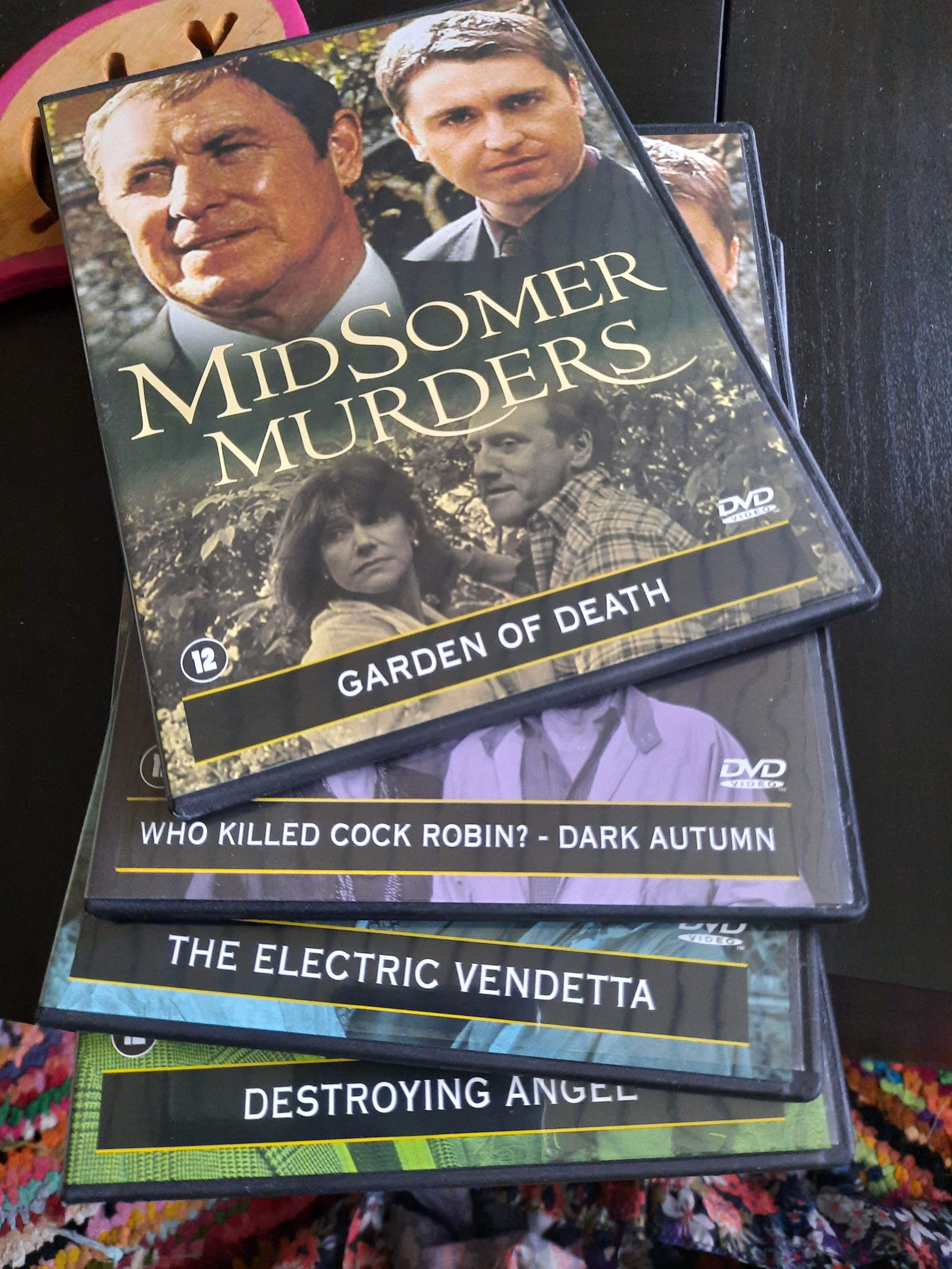 Dus liggen nu hier wat stapeltjes DVD’s. Van seizoen 1, dus nog de oude met John Nettles als inspector Barnaby. Puur nostalgie want alweer jaren geleden te zien.