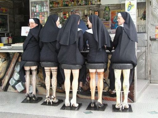 De nonnen uit mijn tijd zouden zich omdraaien in hun graf bij deze foto/