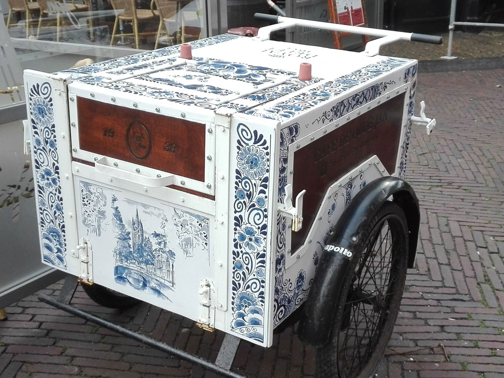 Wandelend in Delft kwam ik deze bakfiets tegen. Aan zoiets kan ik niet voorbij lopen, er moét een foto gemaakt. Maar thuis bedacht ik “wat moet ik er mee?”, want in mijn haast om verder te gaan op die kouwe dag was ik vergeten wat details te fotograferen. Van wie zou die bakfiets zijn en wat wordt er mee bezorgd? Een korte speurtocht op Google bracht me naar dit artikel.