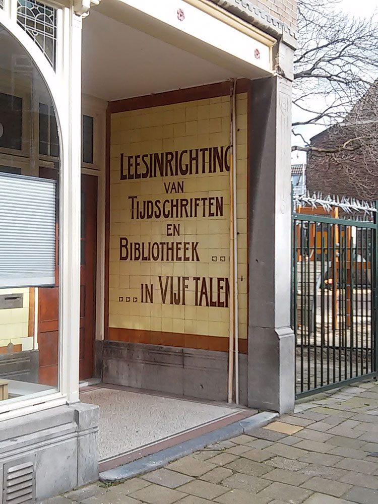 Soms is gebrek aan inspiratie juist de bron voor nieuwe. Want struinend door mijn foto’s kwam ik deze tegen. Gemaakt in het voorjaar van 2016, ergens in het Zeeheldenkwartier in Den Haag. Een nostalgische reclame voor een “Leesinrichting” en stammend uit een tijd dat het helemaal niet zo vanzelfsprekend was dat iedereen de beschikking had over eigen boeken. Maar lenen kon natuurlijk wel, bij zo’n leesinrichting. Dit was waarschijnlijk een chique zaak met zo’n mooi tegeltableau in het portiek. Welke boeken zouden ze daar gehad hebben.