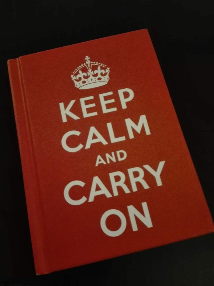 Je snapt wel dat ik dit boekje in Londen niet kon laten liggen. Blijf kalm en ga verder, een wijsheid die je heel ver brengt. Ik heb wel meer van dat soort boekjes zoals met Chinese en Oosterse wijsheden. Niet elke wijsheid is ook in praktijk te brengen, maar zo nu en dan helpt het me op weg.
