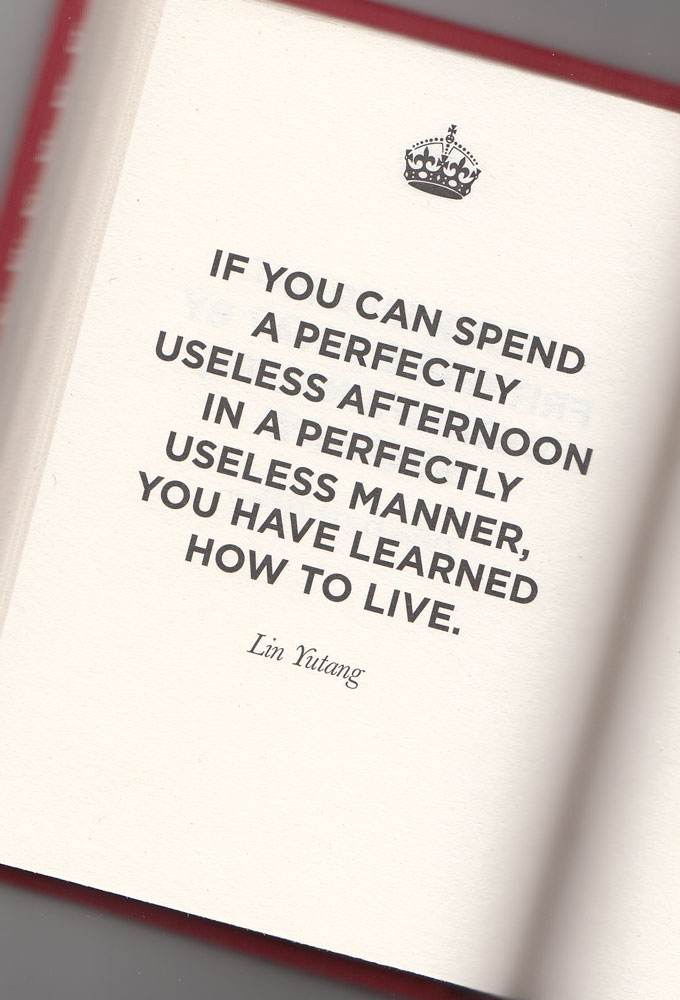 Als je een volkomen nutteloze middag kunt doorbrengen op een volkomen nutteloze manier, dan heb je geleerd te leven (Lin Yutang)