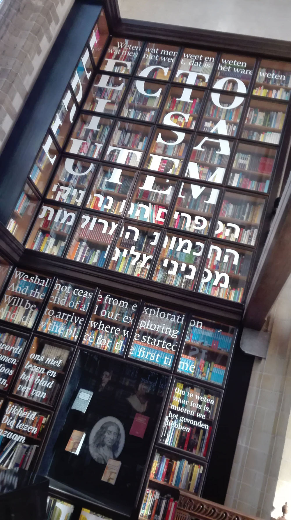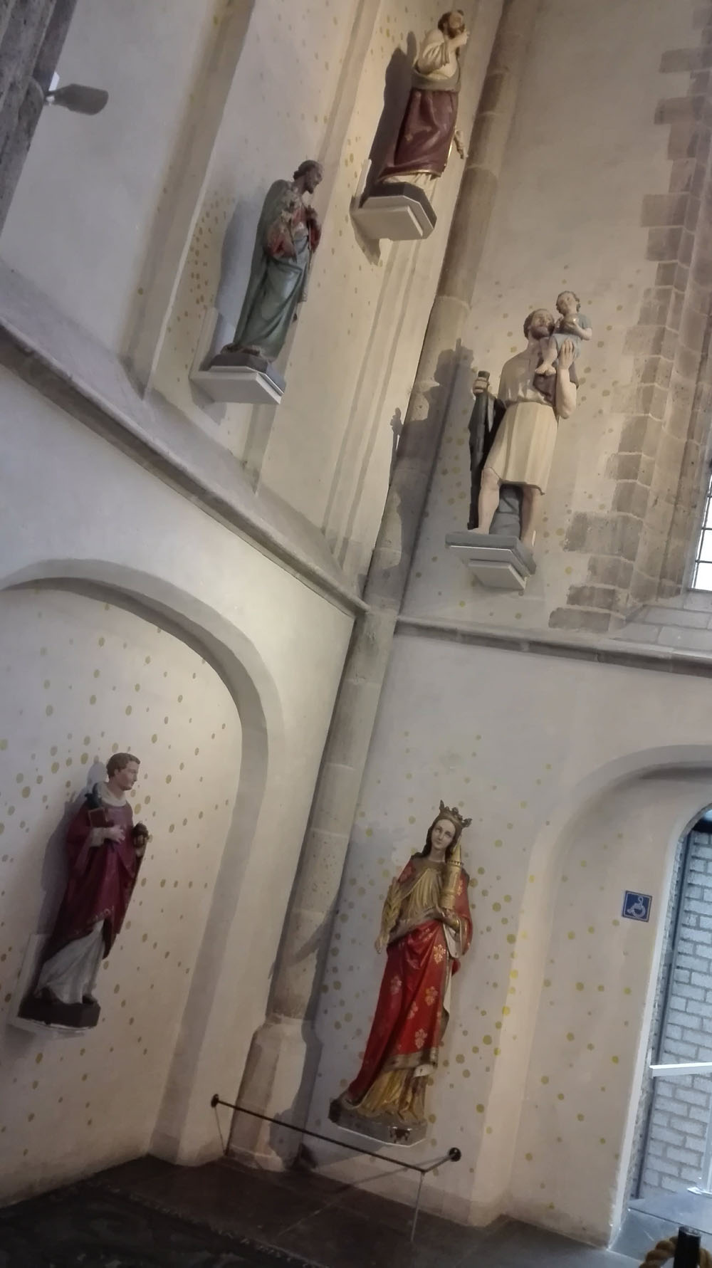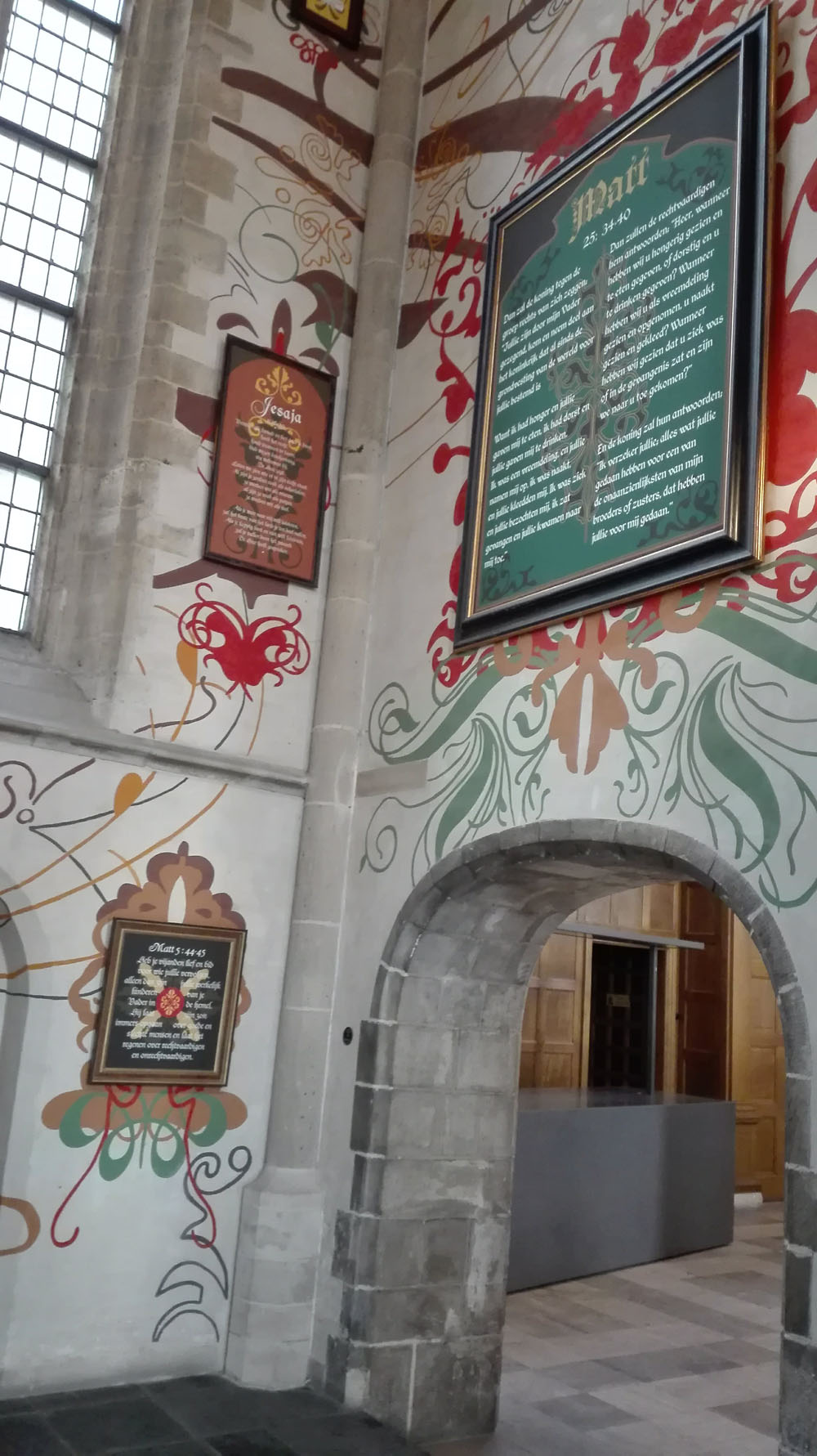 Hoewel het nu een protestantse kerk is, was het in vroeger eeuwen rooms-katholiek. Er staan dus ook nog wat heiligenbeelden. Er is een stukje gewijd aan Erasmus. Ook is er een galerij met allerlei uitingen van andere godsdiensten. Niet vreemd in een stad met meer dan 170 verschillende nationaliteiten en totaal andere geloofsovertuigingen. Het is dus een kerk geworden voor iedereen en dat vind ik een mooie gedachte.