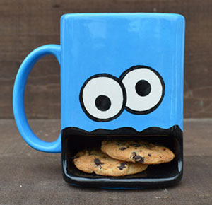 Nee, ik ga voor een gezellige mok. Zoals deze bijvoorbeeld, zelfs voorzien van een koekjesopbergruimte. Helemaal te gek, toch? |