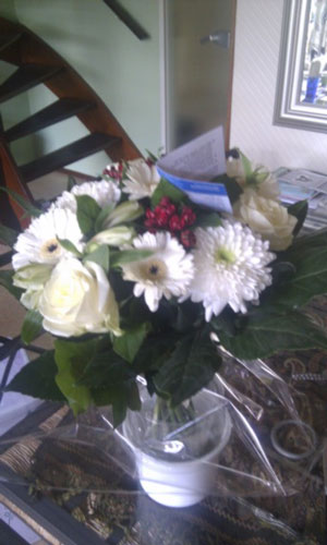 | Er zijn niet zo veel mensen die mij zomaar bloemen sturen. Ik was dan ook heel verrast toen er zaterdag een grote doos bezorgd werd met daarin dit mooie boeket.Wie kon dat nou hebben gestuurd? Stille bewonderaar…? Had ik iets bijzonders gedaan…? Ik was nog niet zo lang geleden jarig, maar dat was toch al uitgebreid gevierd…? Gelukkig zat er een kaartje bij. Het boeket werd me door Aegon Verzekeringen gestuurd omdat ik deze maand mijn eerste pensioen krijg! Nou, dat vind ik nou nog eens een leuke geste. Dus Aegon: VAN HARTE BEDANKT! Ik werd er erg blij van. |