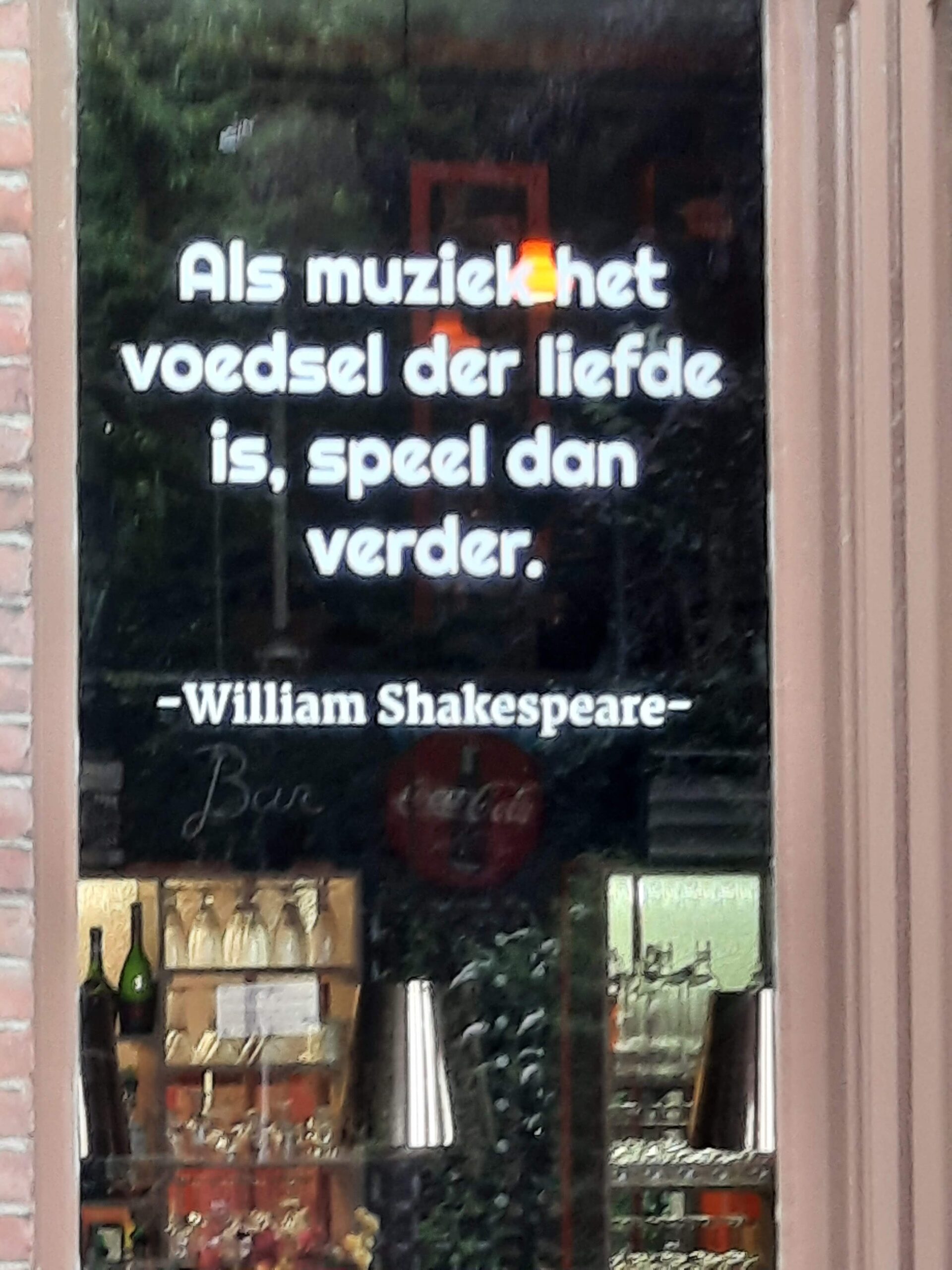 Er waren nog meer ramen met andere citaten. Maar deze sprong er voor mij toch echt uit. Shakespaere heeft veel gezegd en geschreven. Maar deze was nieuw voor mij. Ik vind het een citaat om te onthouden.