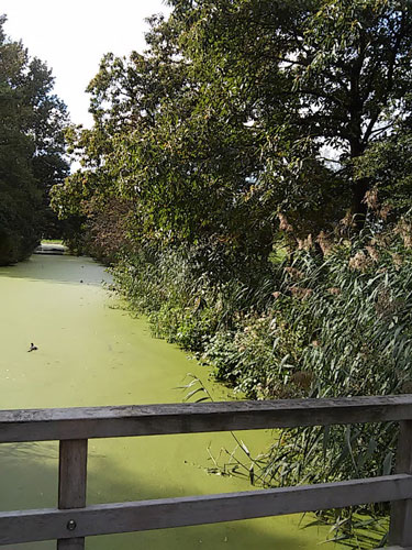 Bladeren ritselden, vogels vlogen in en uit de bomen, floten of krijsten wat. Door de wind tolde een veertje over het kroos en twee libellen maakten een zwierige salto. Even een rustmomentje…
