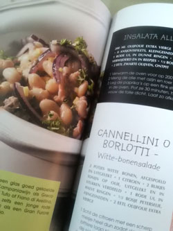 Vorige week kreeg ik zomaar een kookboek cadeau. Het is boek met Italiaanse recepten, heel maakbaar en vooral erg lekker.