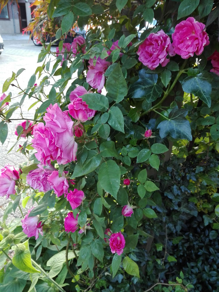 De natuur heeft zo haar eigen grillen. Bij het veranderen van onze voortuin, jaren geleden, plantte ik deze roos aan beide zijden van de ingang. Een roos zonder doornen, dat is wat prettiger voor de komende en gaande bezoeker. Aan één kant was het huilen met de pet, want er kwam wel blad, maar nauwelijks bloemen. En toen was de roos helemaal weg. Aan de andere kant, op nauwelijks 1 meter afstand, deed de klimroos het wel, maar echt veel bloemen kwamen er niet aan. Nou zou dat natuurlijk kunnen liggen aan mijn verzorging, verkeerd snoeien misschien. Maar dat snoeien gebeurt altijd door de tuinman, dus daar zou het niet aan mogen liggen.