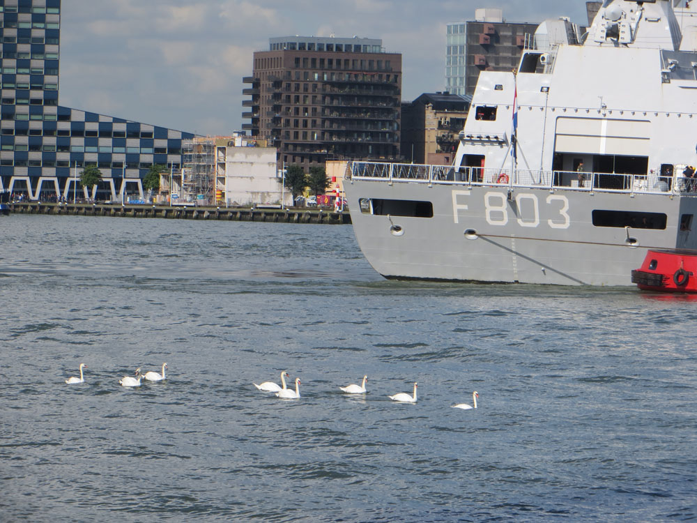 Gisteren waren er al veel voorbereidingen te zien. Podia werden opgericht, tenten stonden her en der in het havengebied en marineschepen werden naar hun tijdelijke ligplaats gesleept. En daar konden we dus mooi even bij meekijken tijdens onze wekelijkse Ganzenpas-wandeling. Want ondanks de regen aan het begin van de morgen, gingen we toch op weg en kijk… na een kwartiertje kwam de zon en werd het een heerlijke wandeling.
