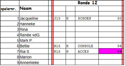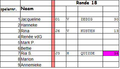 Hij gaf aan dat er een nog hogere score te behalen was, namelijk DER (op H11 horizontaal), dat 19 punten zou hebben opgeleverd.